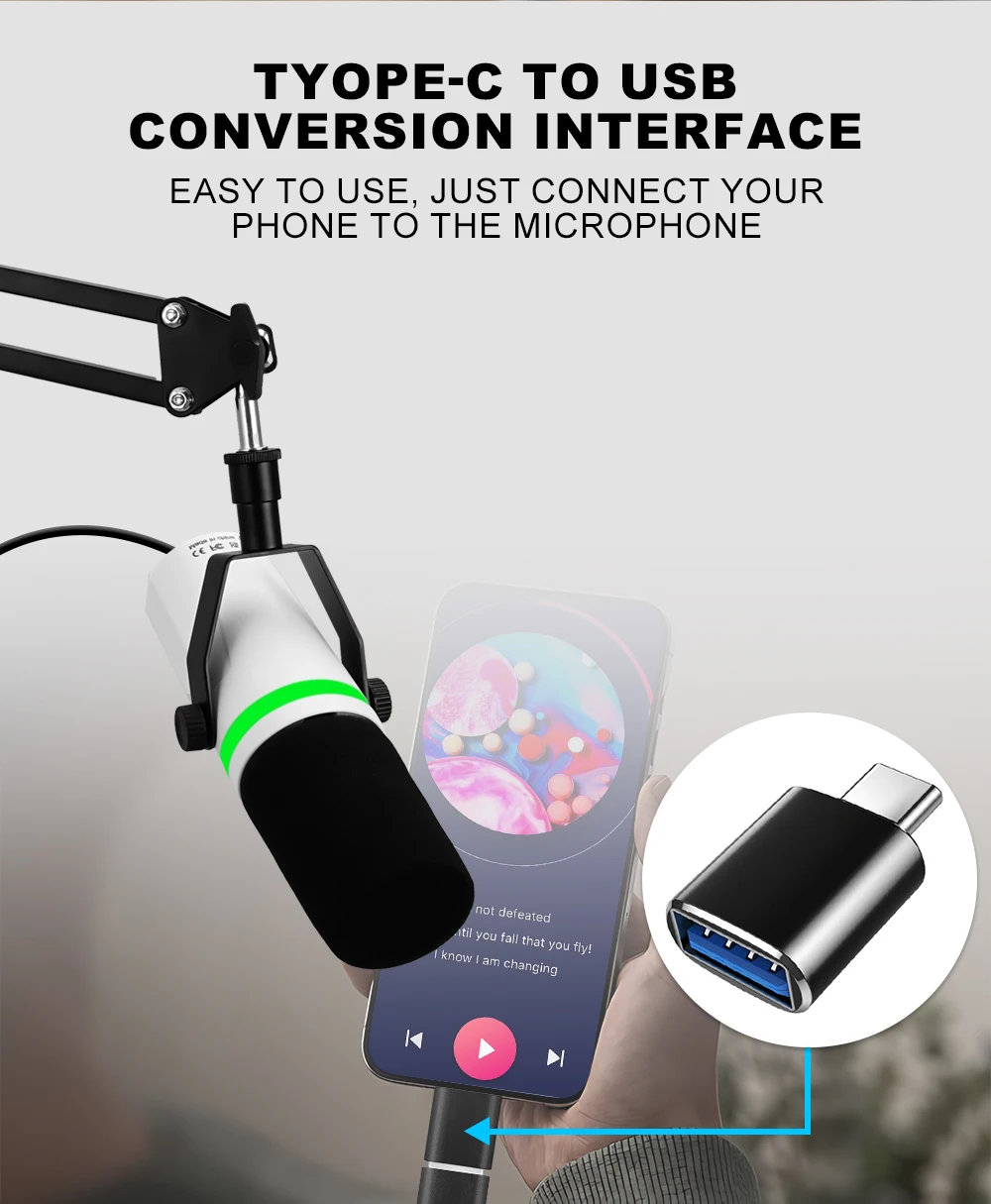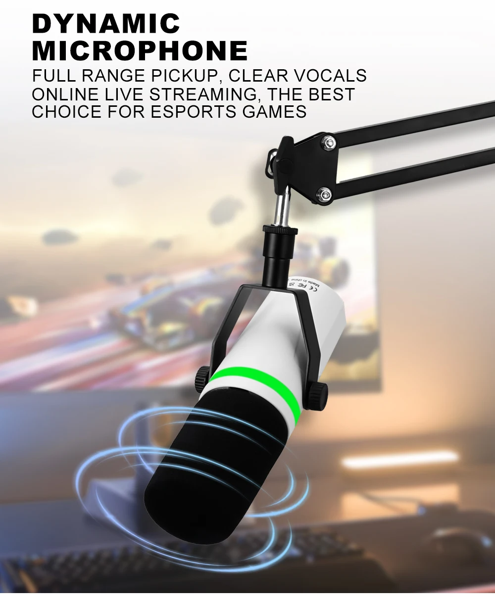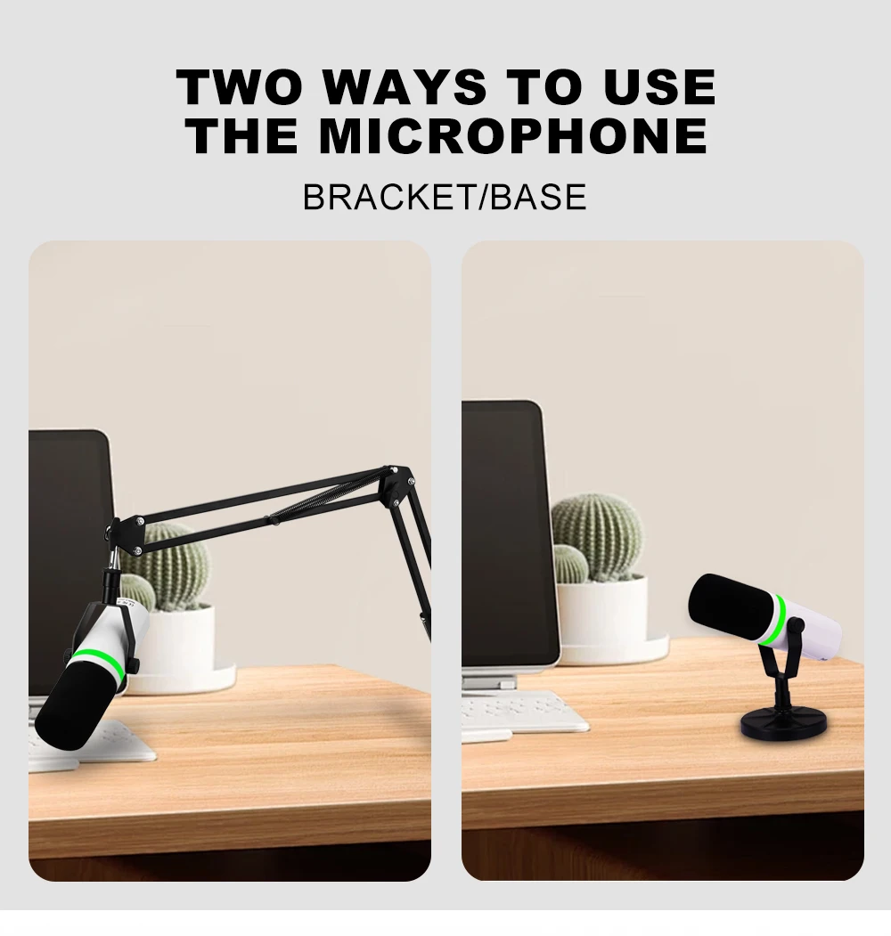 Professional USB Or XLR Streaming Podcast PC RGB Microphones Studio Cardioid Mic Kit with Cantilever Boom Bracket For Recording