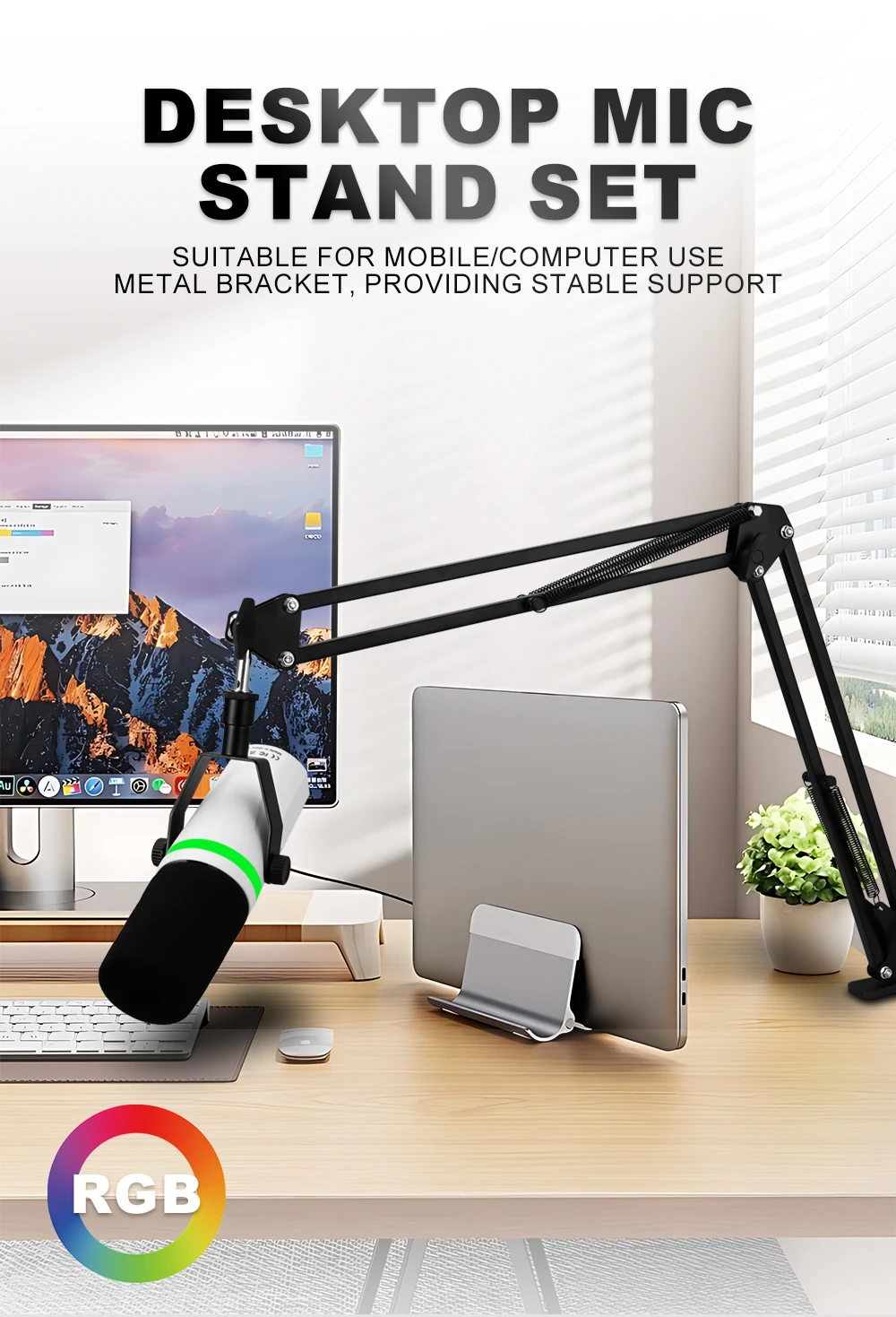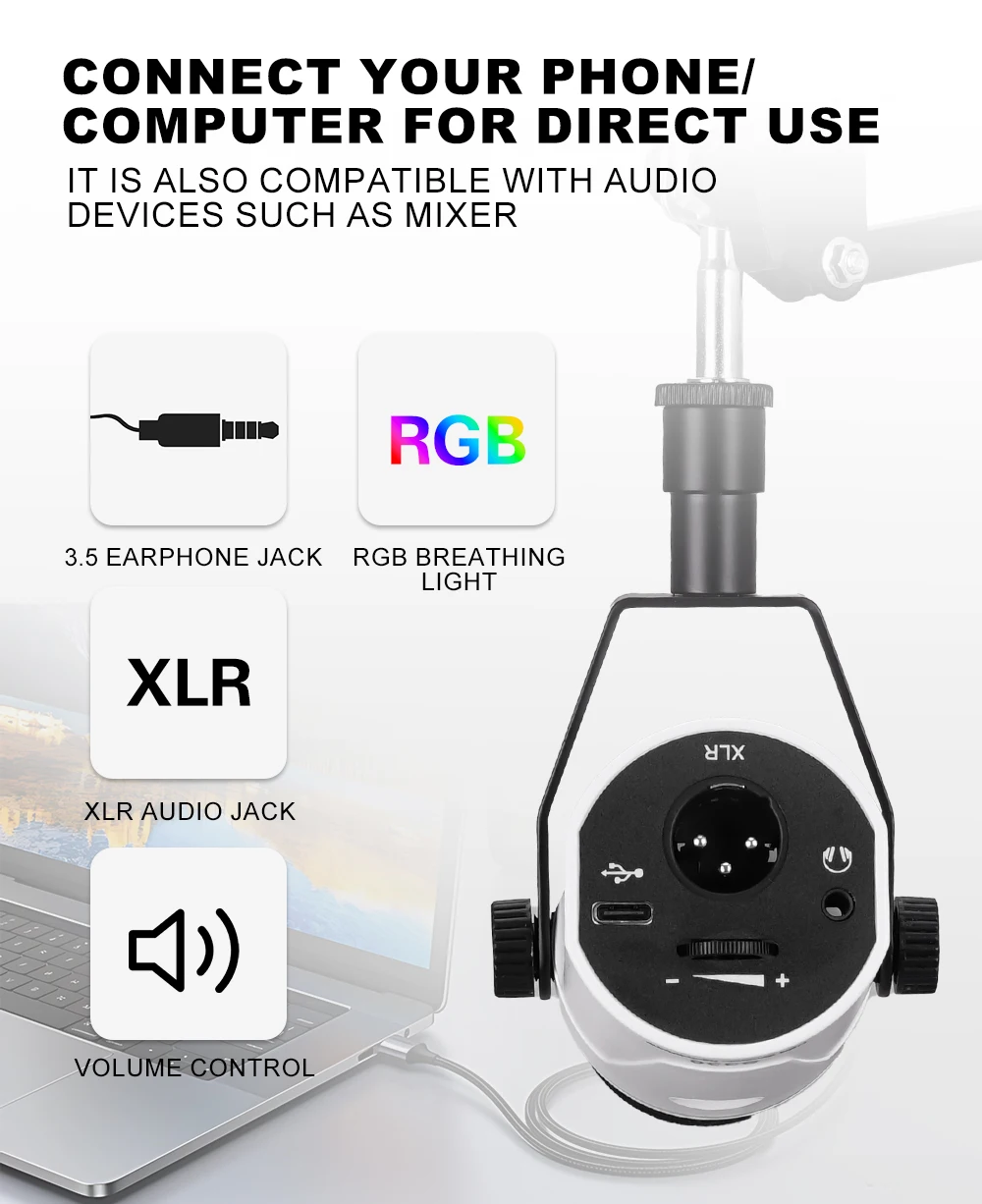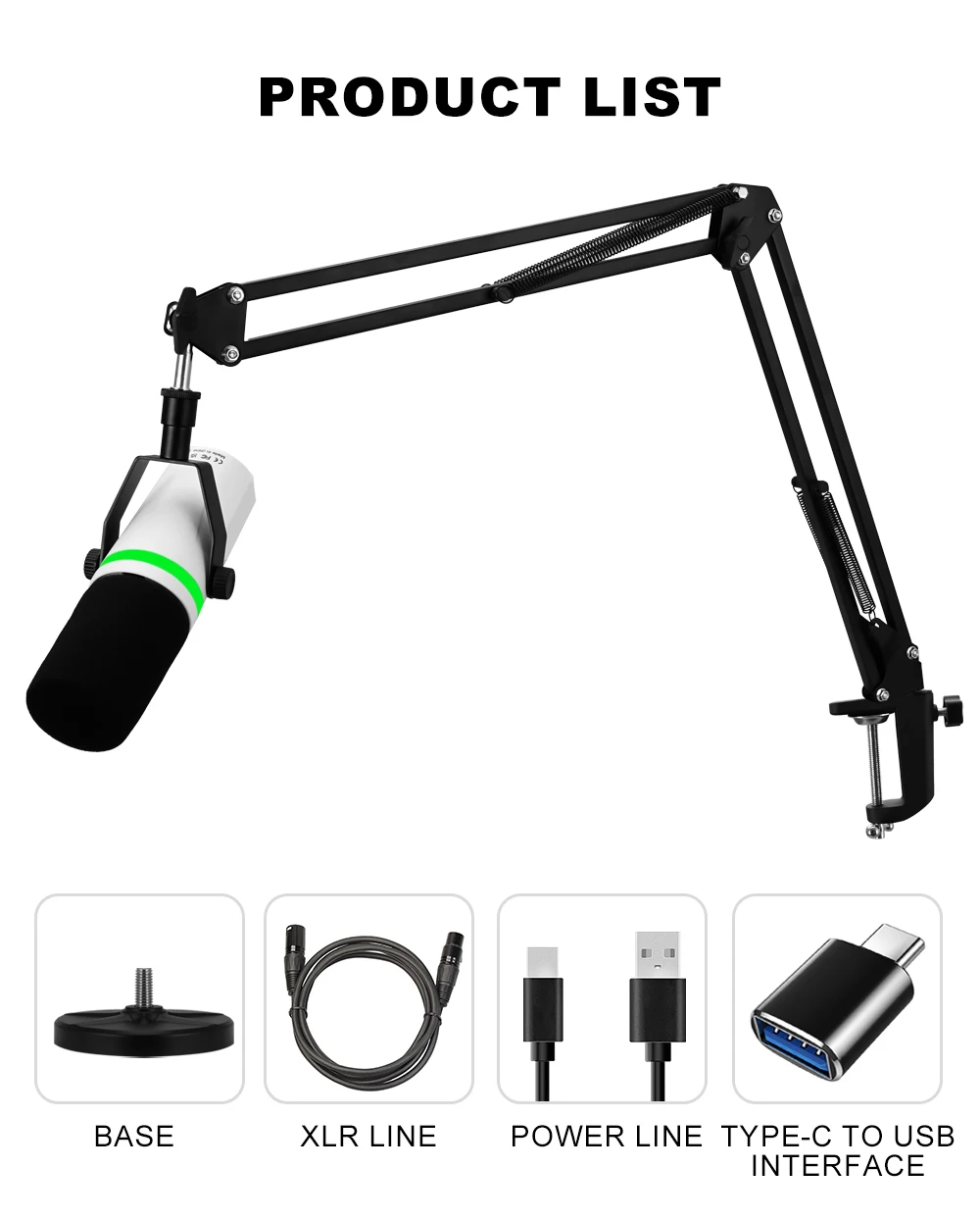 Professional USB Or XLR Streaming Podcast PC RGB Microphones Studio Cardioid Mic Kit with Cantilever Boom Bracket For Recording