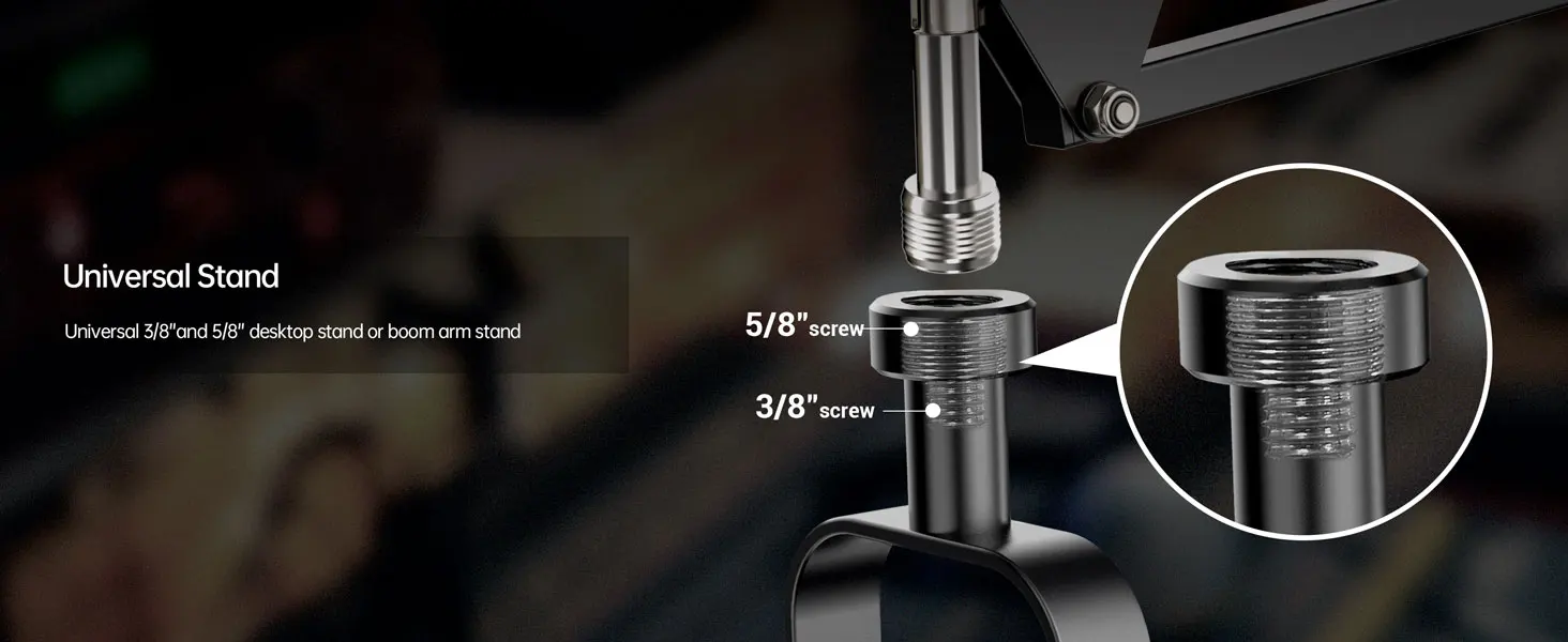 Universal 3/8"and 5/8" desktop stand or boom arm stand