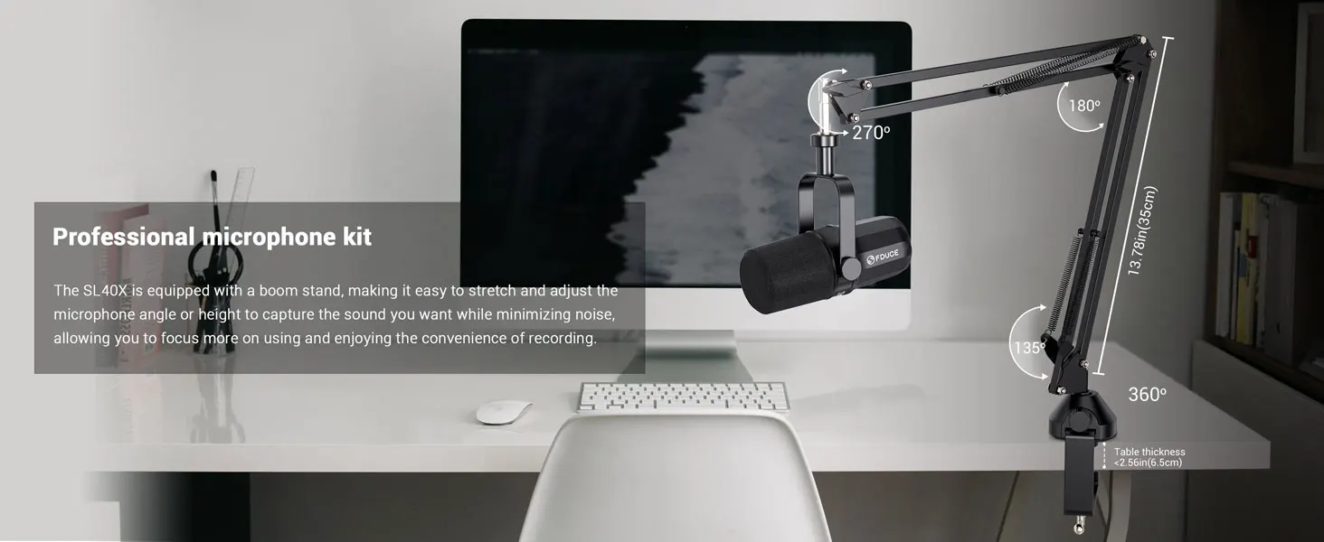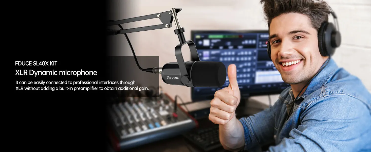 FDUCE SL40X+ /SL40X XLR Dynamic Microphone Kit With Arm Stand/Built-in Headset Output / Sound Insulation,For PC PS5/4 Mixer